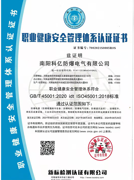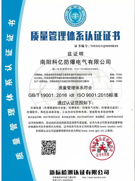 南陽科億防爆電氣有限公司是一家專業(yè)從事防爆電器、防爆儀表的研究、開發(fā)和生產(chǎn)的企業(yè),獲得發(fā)明專利和多項國家實用新型專利,通過ISO9001質(zhì)量體系認(rèn)證、獲得生產(chǎn)許可證。